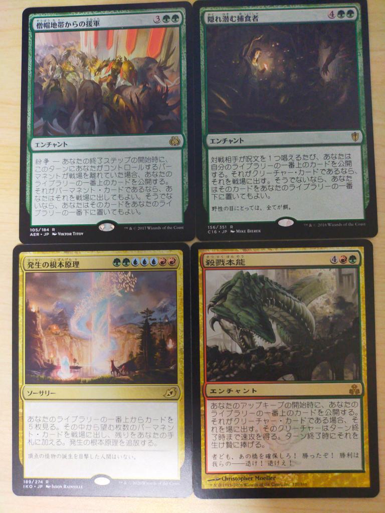このあたりの、ゲームが終わってしまうカードや雑な全体強化エンチャントはサイドボード扱い(?)とする。