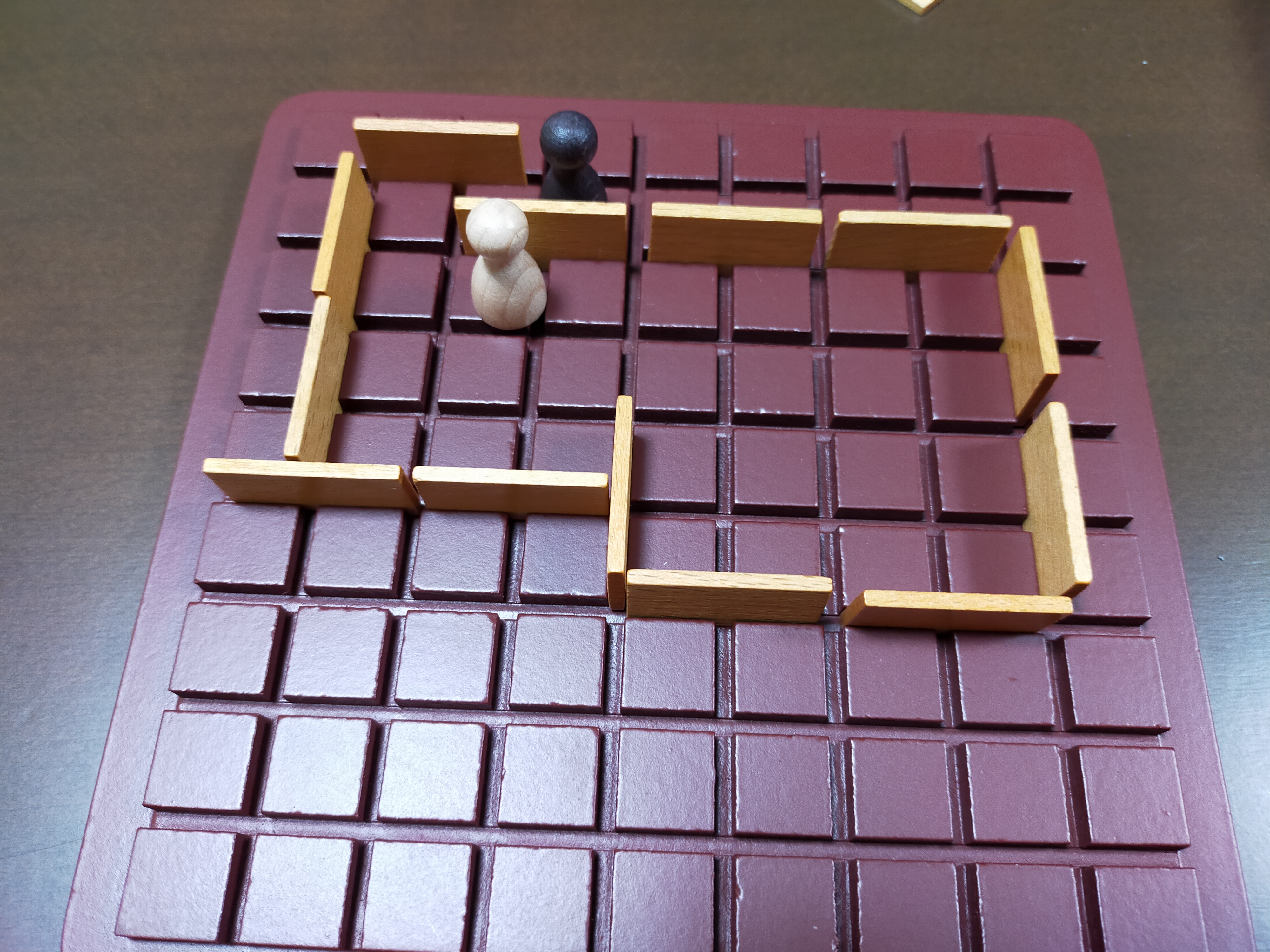 板を横に並べて、完全に道を塞がない程度に妨害は出来るが、板を置くのに1ターン使ってしまうので黒のコマが動けない。