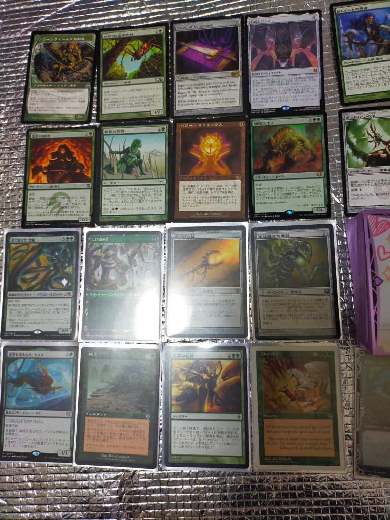 持っていないカードでは、ヴォリンクレックス、真理と正義の剣、不屈の神ロナス、解き放たれた者ガラク、探索する獣、オーランの凍り牙、など試したいカードは多いが、それ以前に持っているカードの中でも何を入れるか迷う。