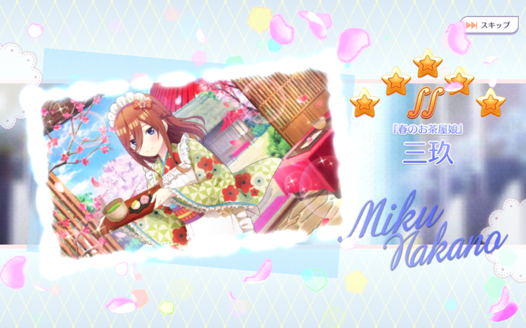 三玖と一緒にお茶を飲んでのんびりしたい。