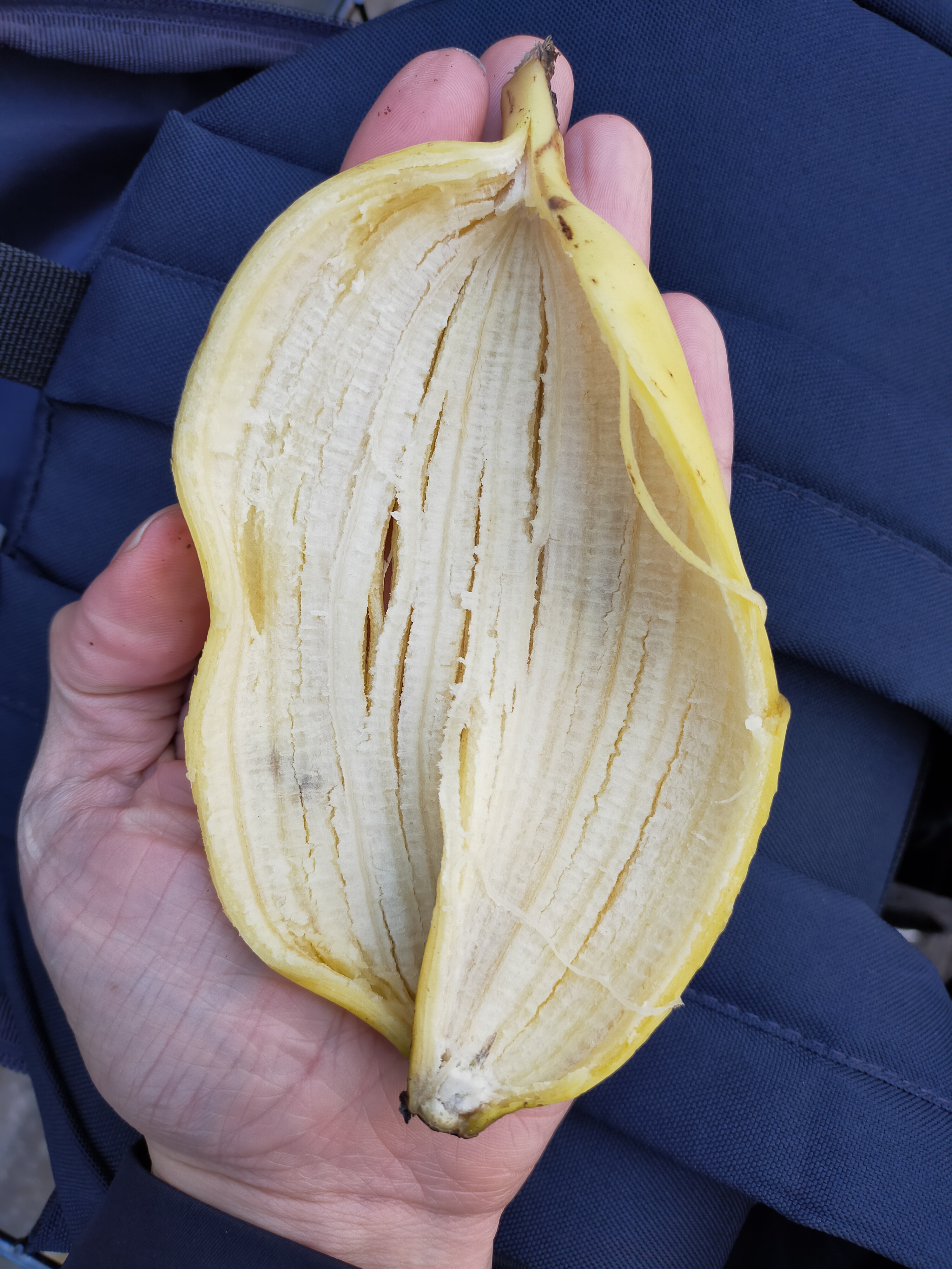 バナナの皮はおしり側(バナナ同士がくっついている側を頭として)から剥くと白い筋がきれいに剥けるらしい。