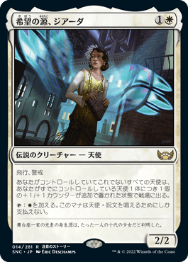 そして天使限定の強化能力も持っていて、自分以外の天使分+1/+1カウンターが乗った状態で戦場に出る。