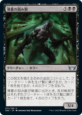 7マナ5/4だが唱える際に、1体生け贄か1枚捨てるか4点ライフロスのいずれかを強いてくる。