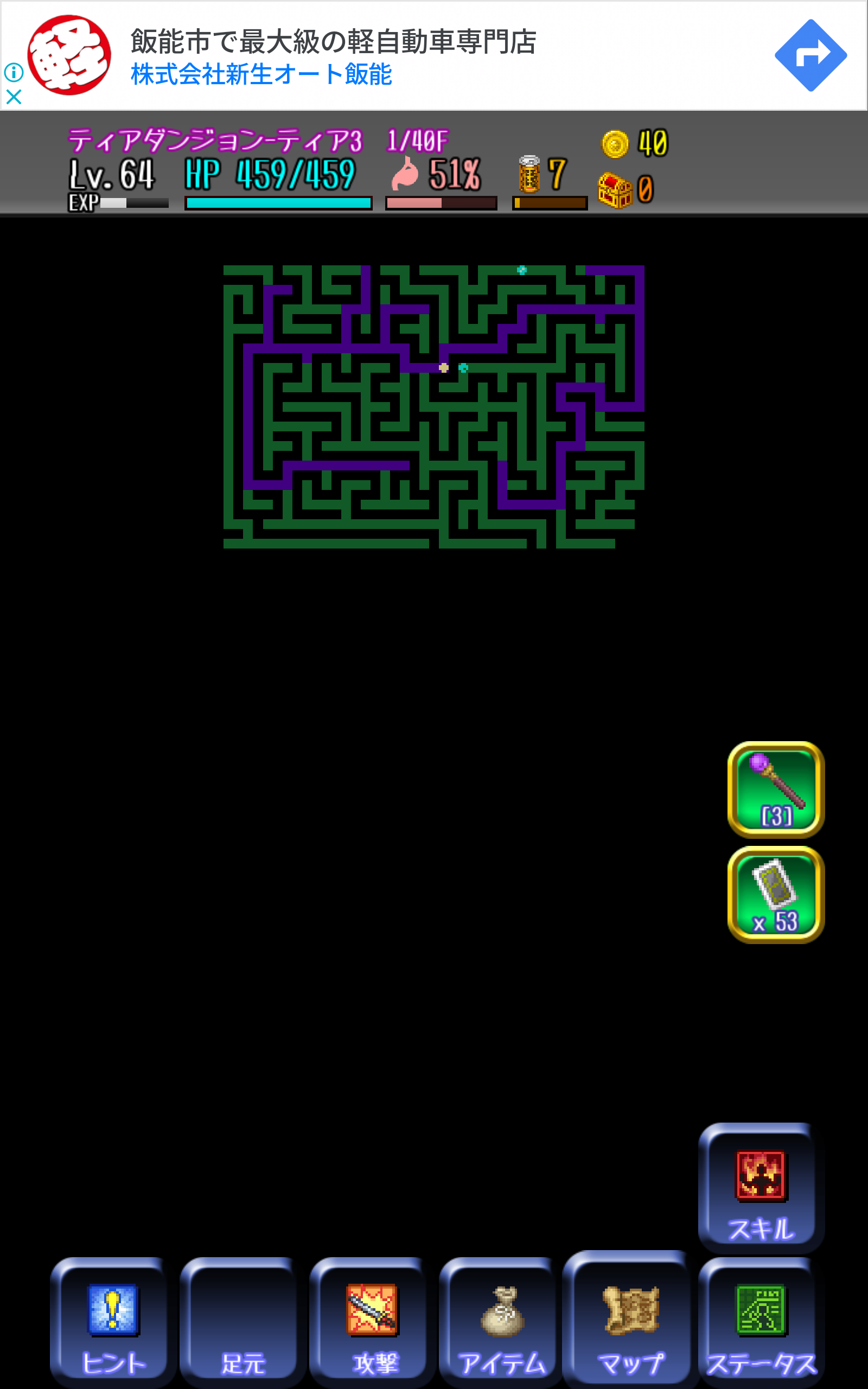 ダンジョン内で死亡してもレベルもアイテムも減らず、所持金が1割減るだけなのでかなり気楽。