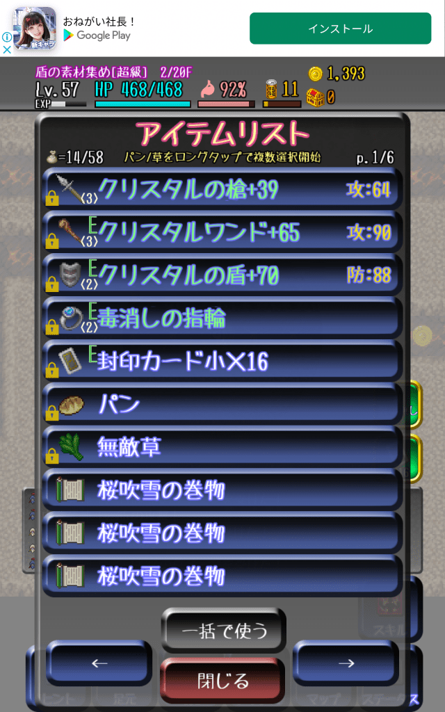 広告を見ることによって課金石に相当するアイテムが手に入ったり、ダンジョン内でアイテムを入手できたり、合成できたりするけども。