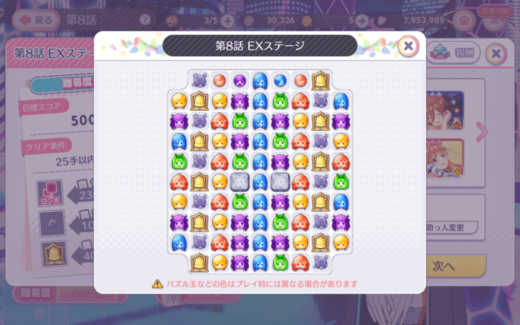 イベントステージの最後、第8話のEXステージが予想外に難しかった。