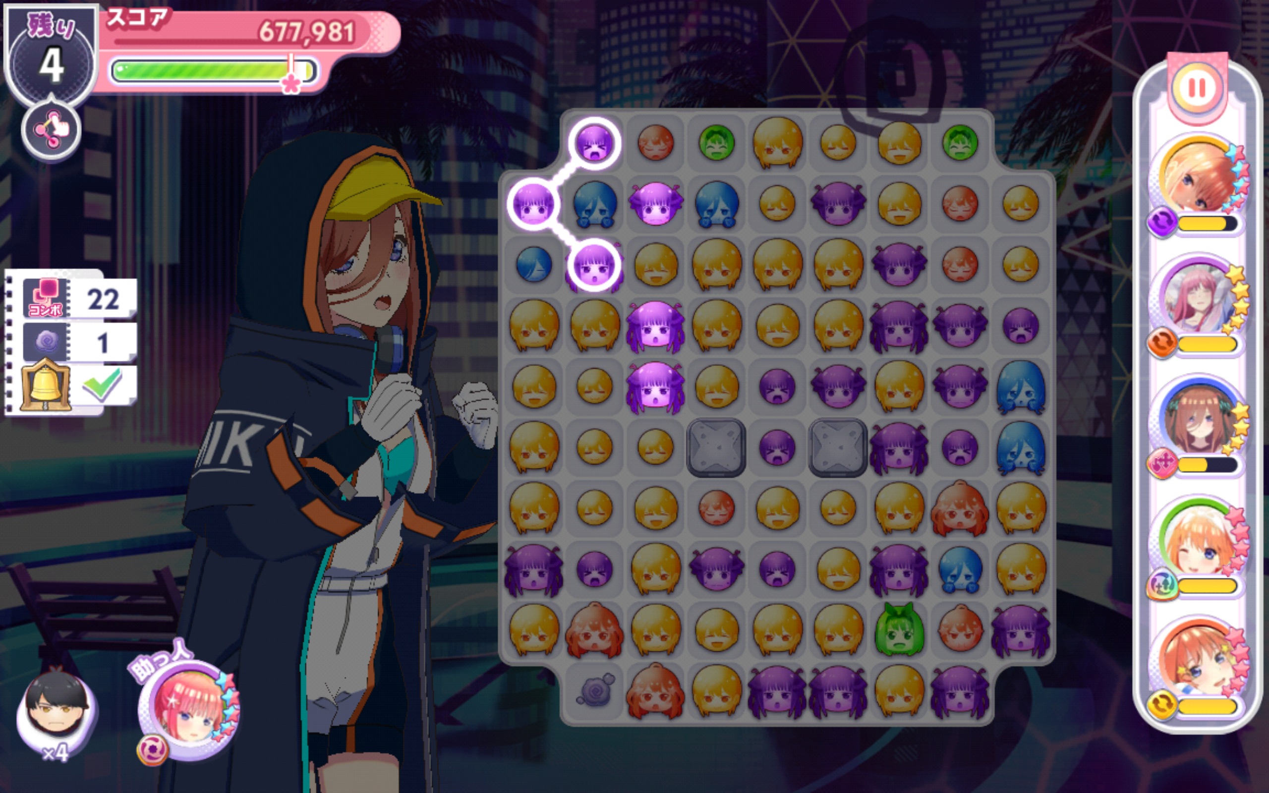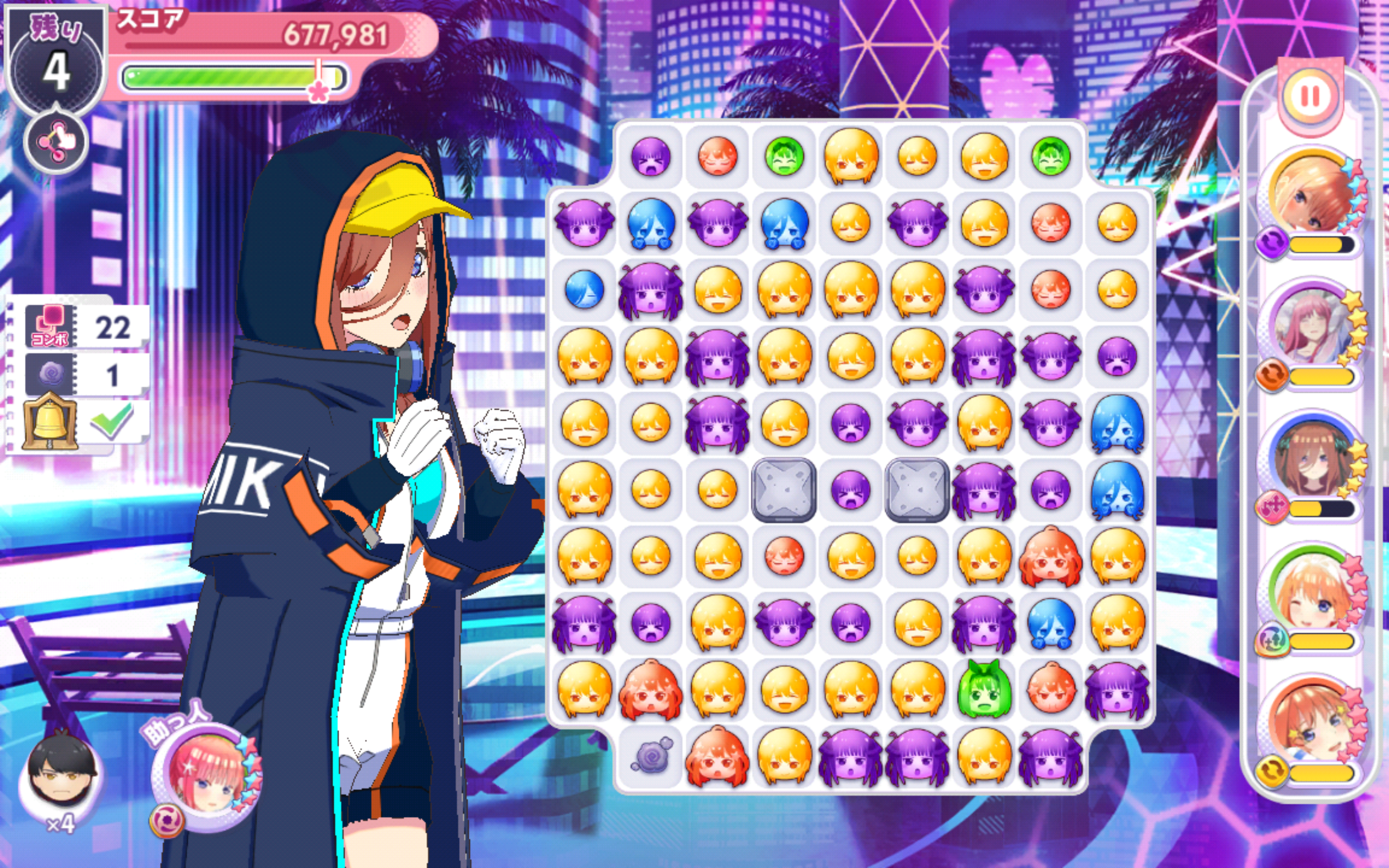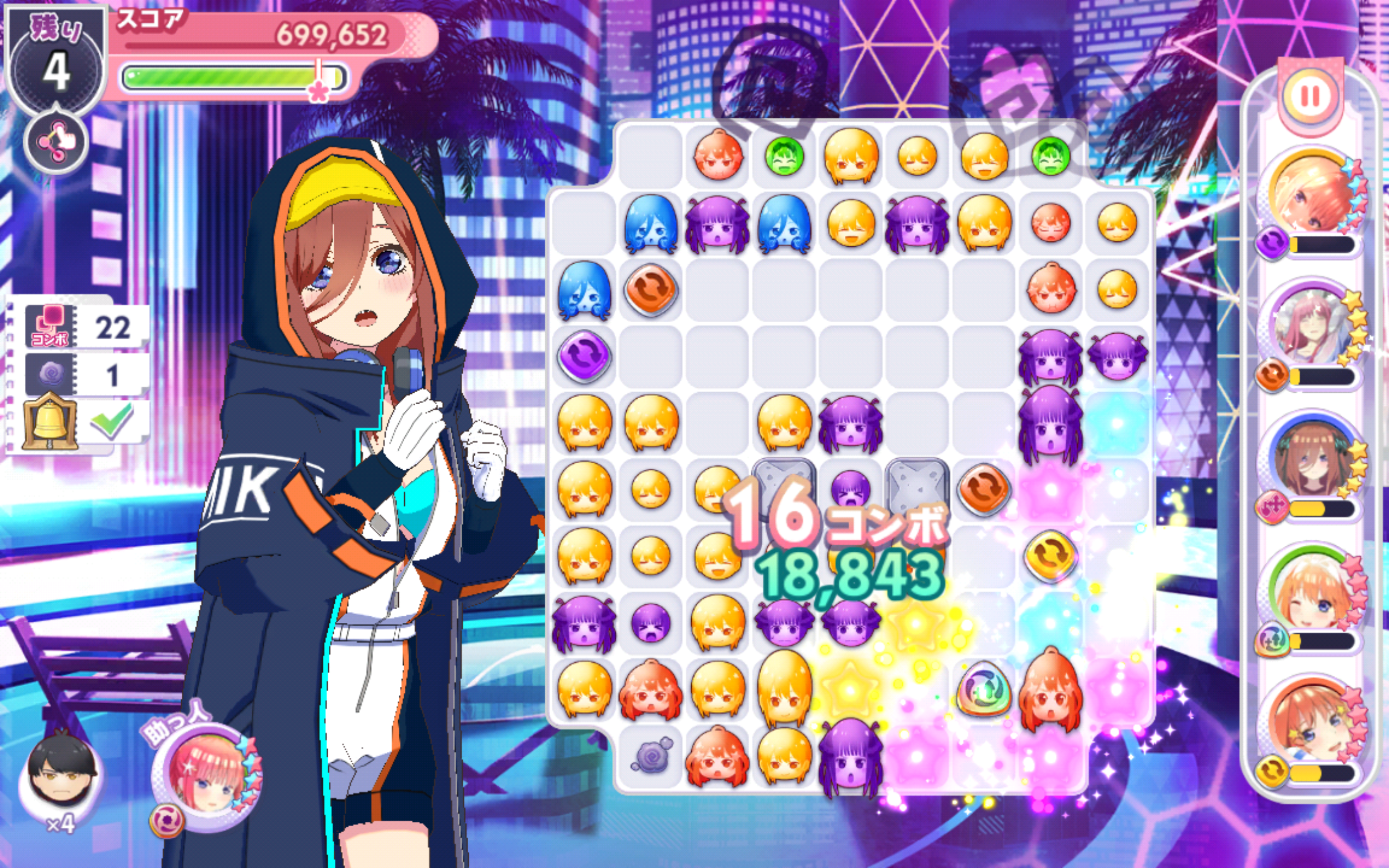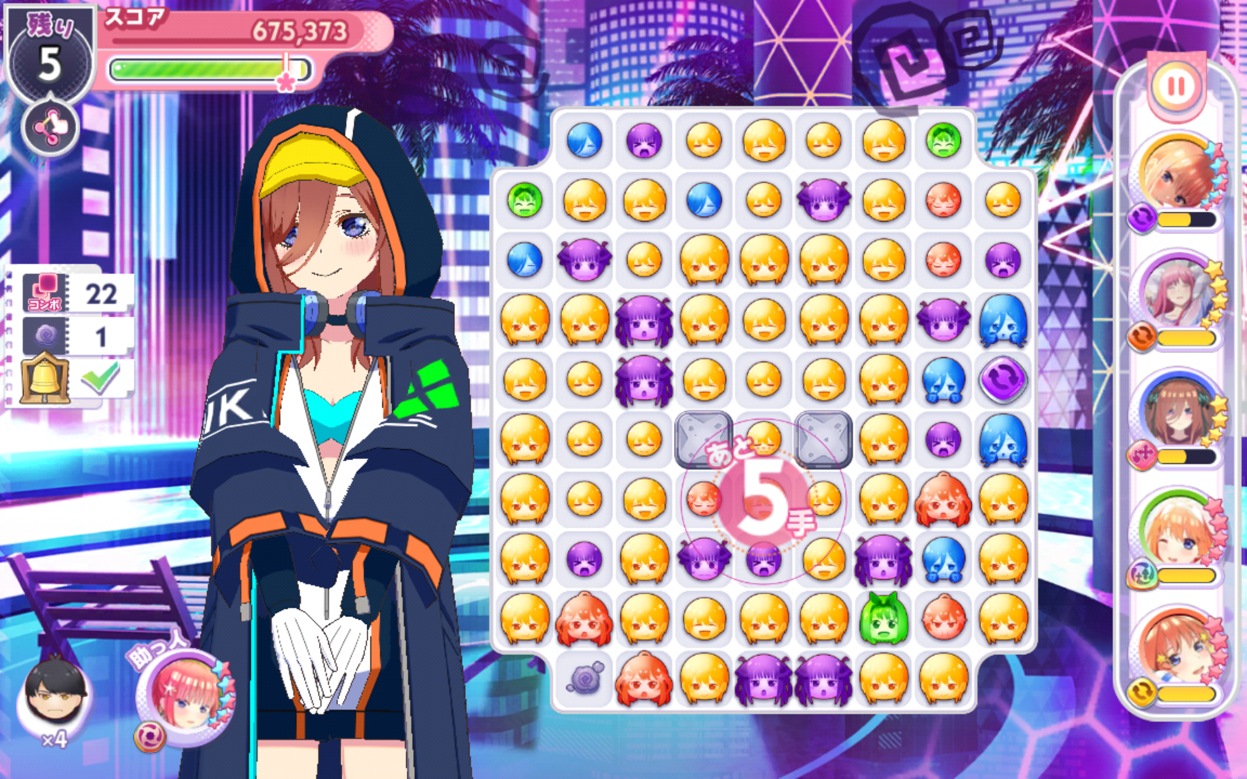 フレンドの助っ人キャラは戦隊大失格コラボ二乃(必要なコンボ数-3)にしておいたので、クリアできる人が増えればいいな。