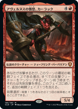 あなたが攻撃するたび、なのでカーラック自身が攻撃する必要はないので使いやすい。さすが神話レア。