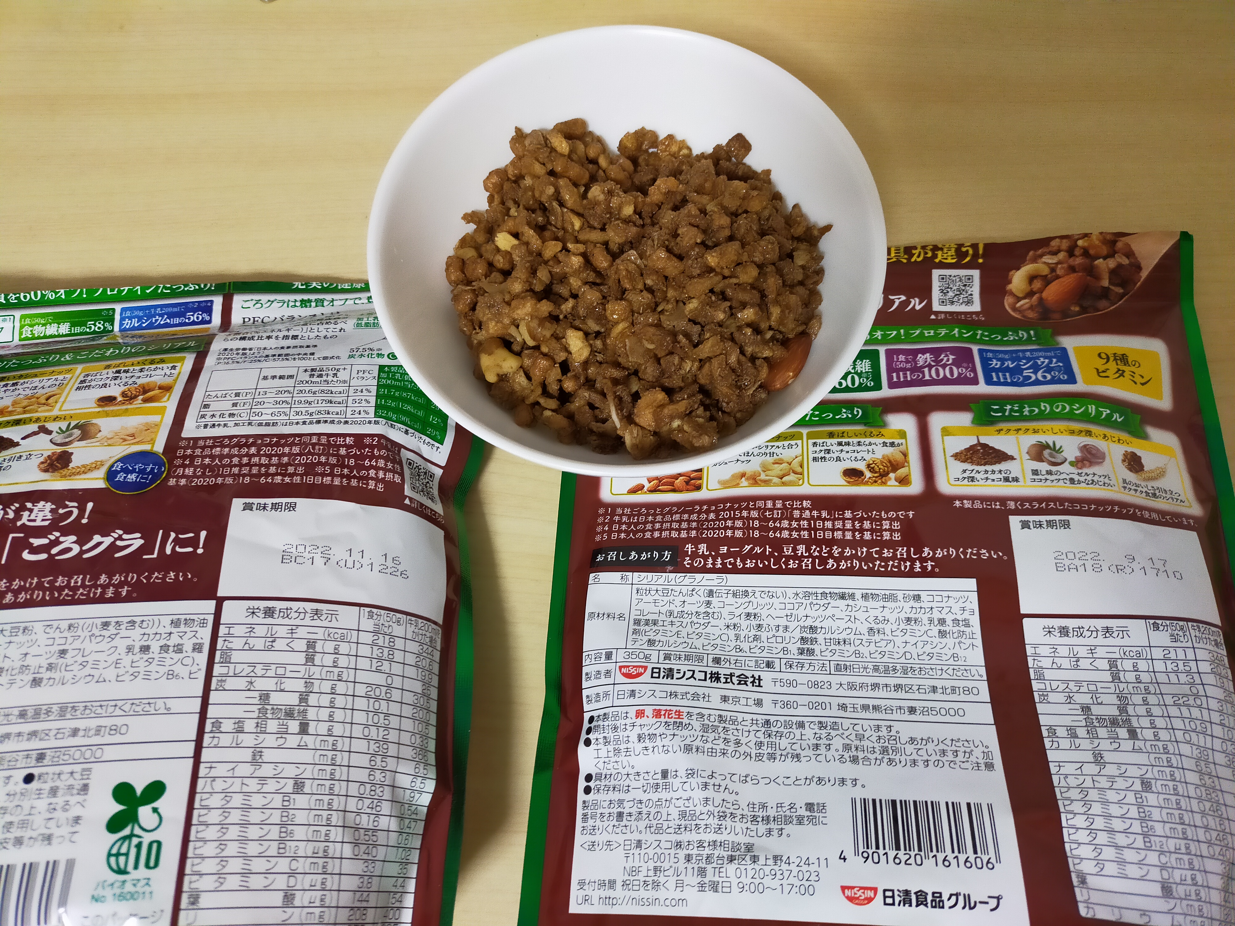 右が旧デザインのごろっとグラノーラ、左が新デザインのごろグラ。