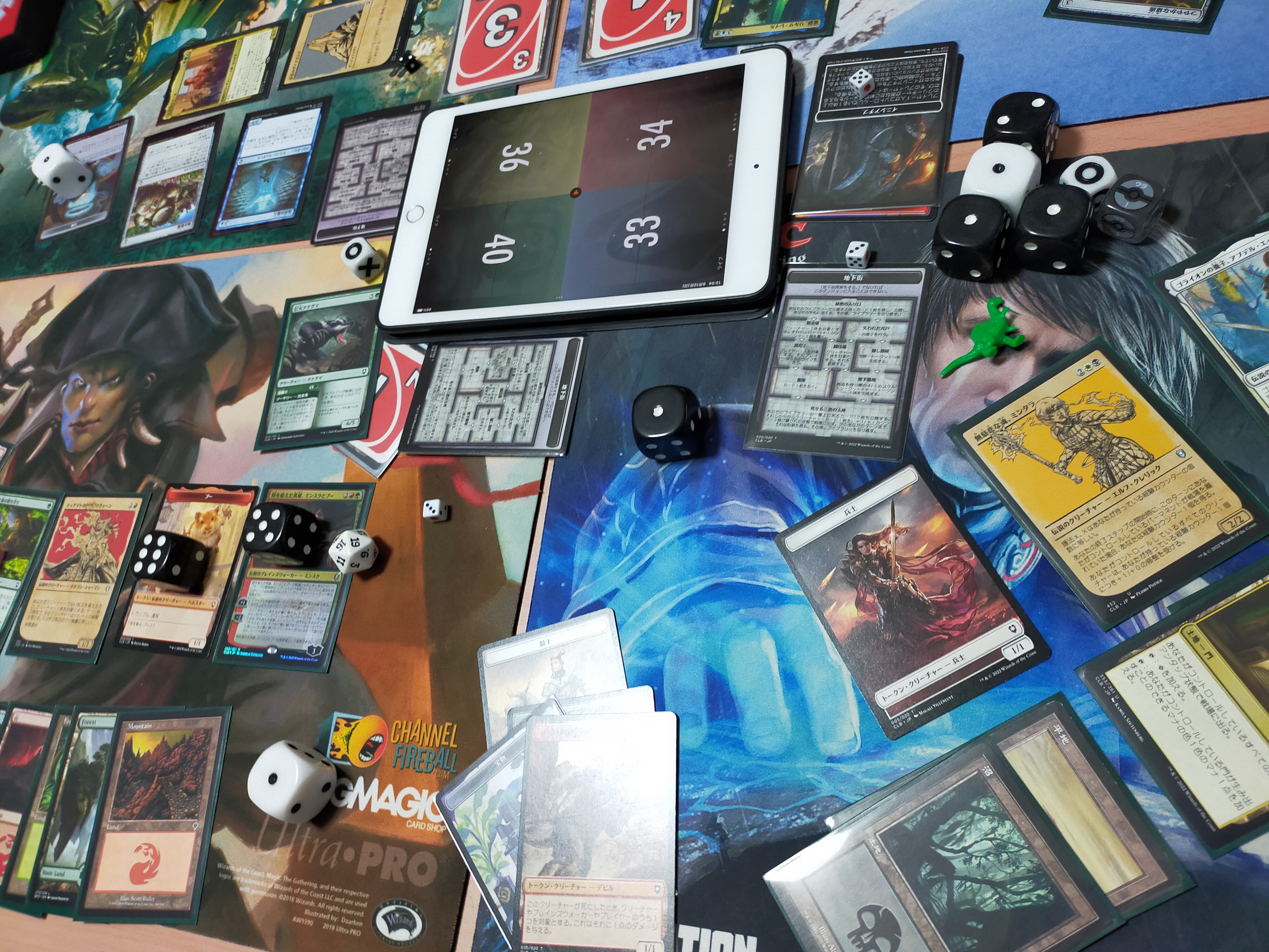 全員で攻撃して、イニシアチブを得て5点ライフロスまで食らわせて、相手のライフは-41点。