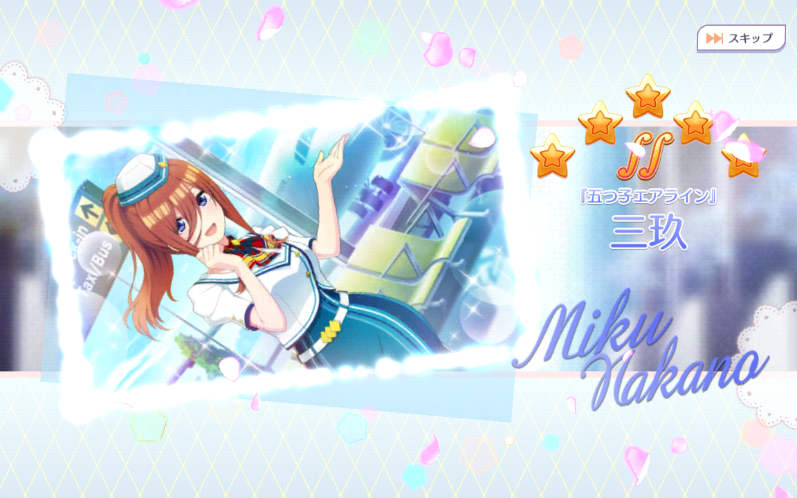 確定チケットでダブってしまったのは悲しい。一花と二乃が欲しかった。