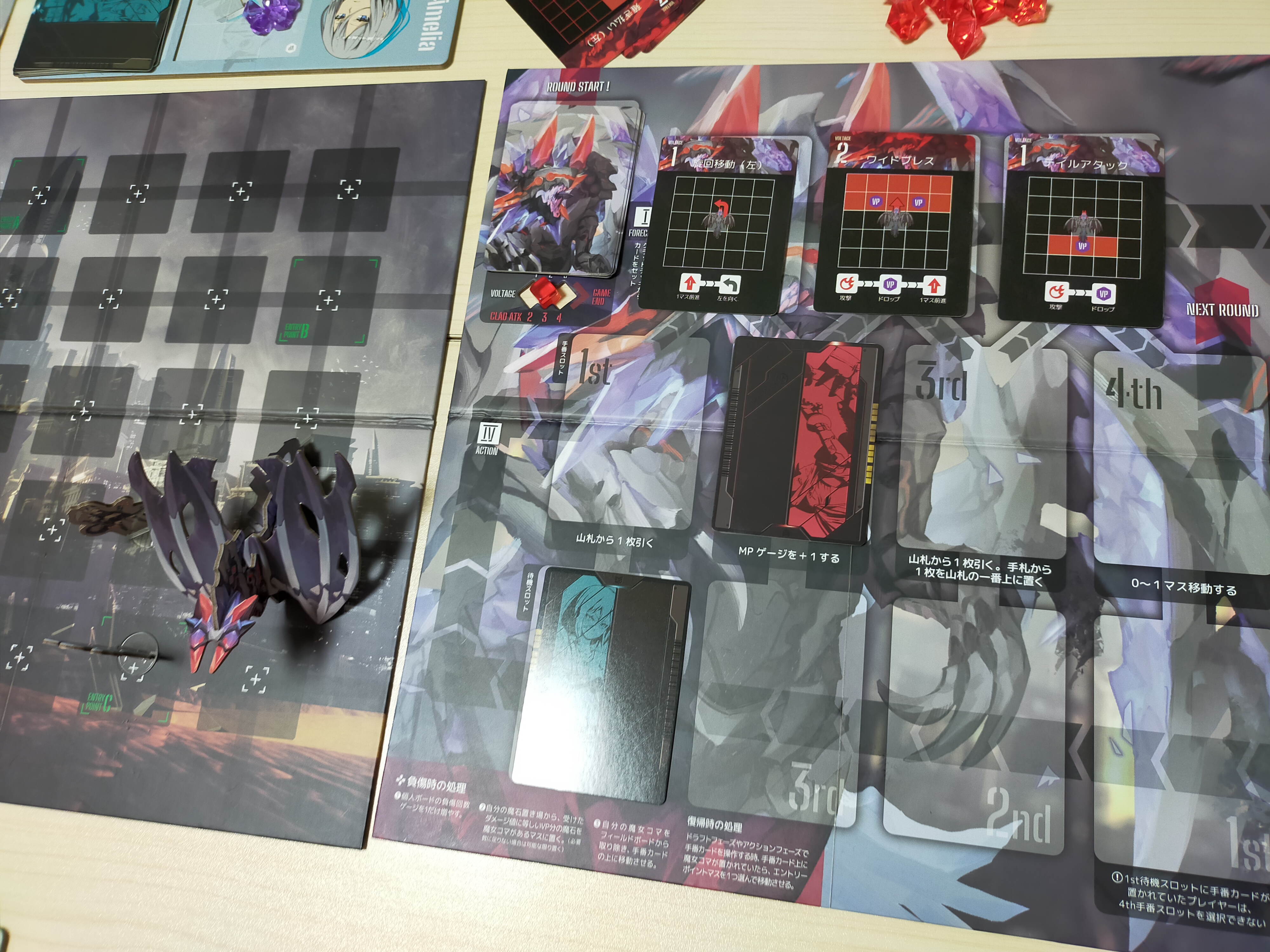 手札を使って攻撃や防御をしたり、手札を捨てて移動したりMPを回復したりして、勝利点を増やしていき、最終ラウンド終了時に勝利点が多い人の勝ち。