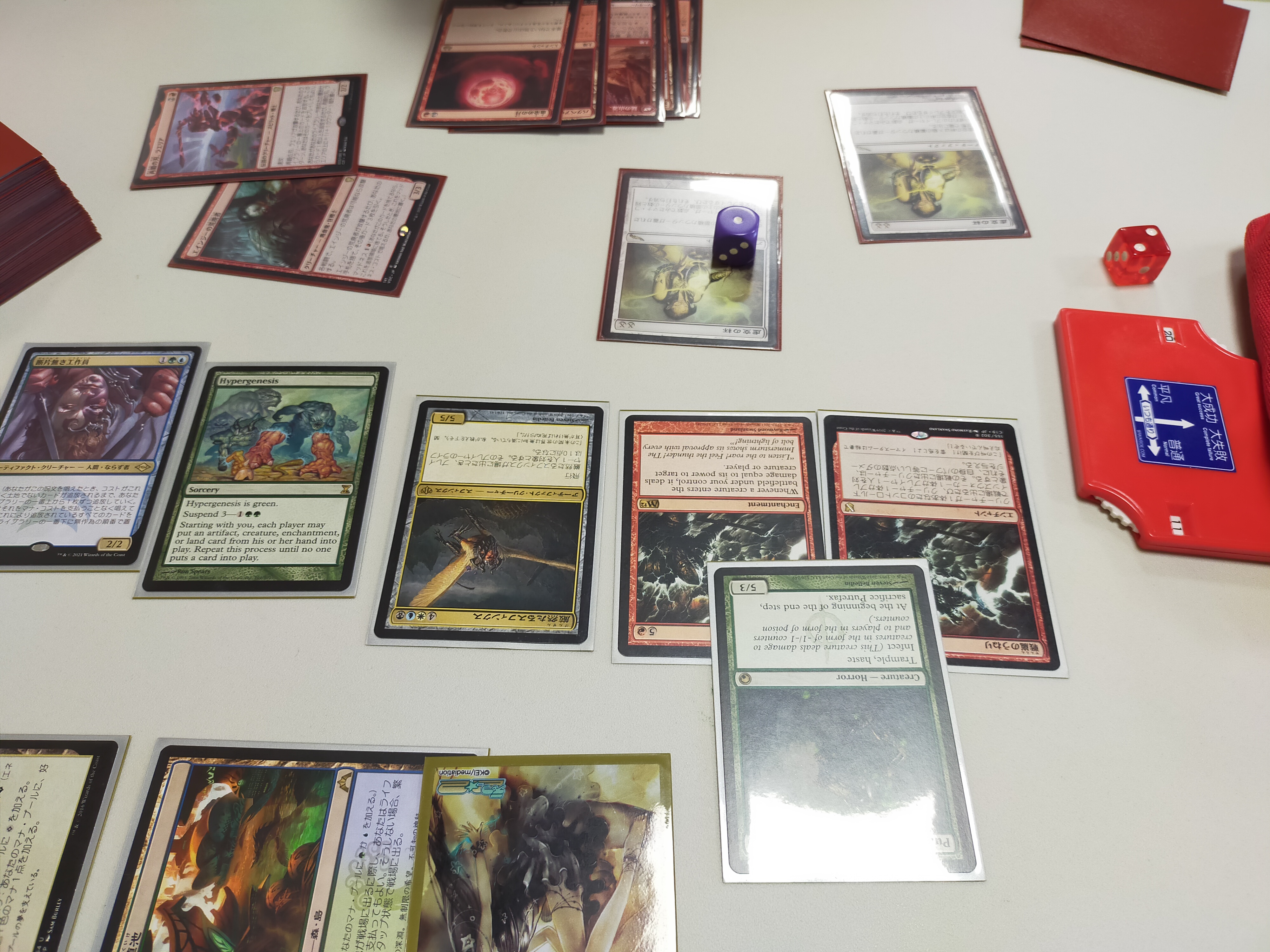 MTGの話。 今日は、あかまぐろさん主催のあかまぐろ杯(レガシー大会)に参加した。 今日の午前1時まで、使うデッキを迷ったが、John Avon単ではなく、ある程度戦える超起源に決定。 その後、毒殺プランを入れた … 続きを読む 赤まぐろ杯レガシーに超起源で参加した(ライフ0と毒10個をほぼ同時に達成)