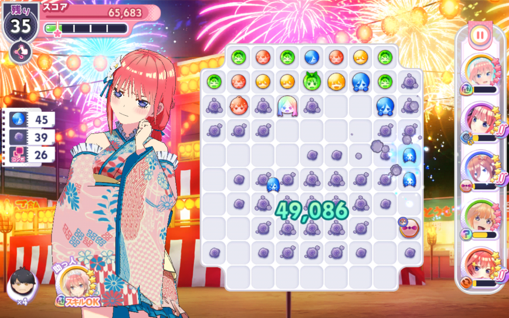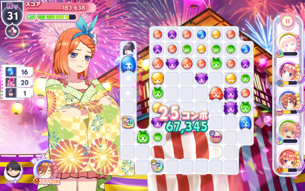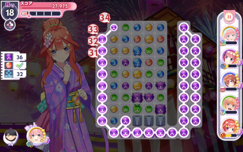 最終的に紫玉を右から繋げれば32チェイン達成。
