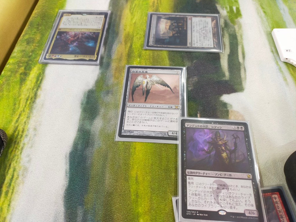ファイレクシア流再利用で回収して、次のターンに白金の天使を出し直せばいいやと思っていたら、さびれた寺院で迷路の終わりをアンタップされ、そのまま起動でニヴミゼットの勝ち。