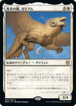 4マナ3/4飛行でグリフィンが戦闘ダメージを与えるたび、2/2飛行グリフィンが生成される。