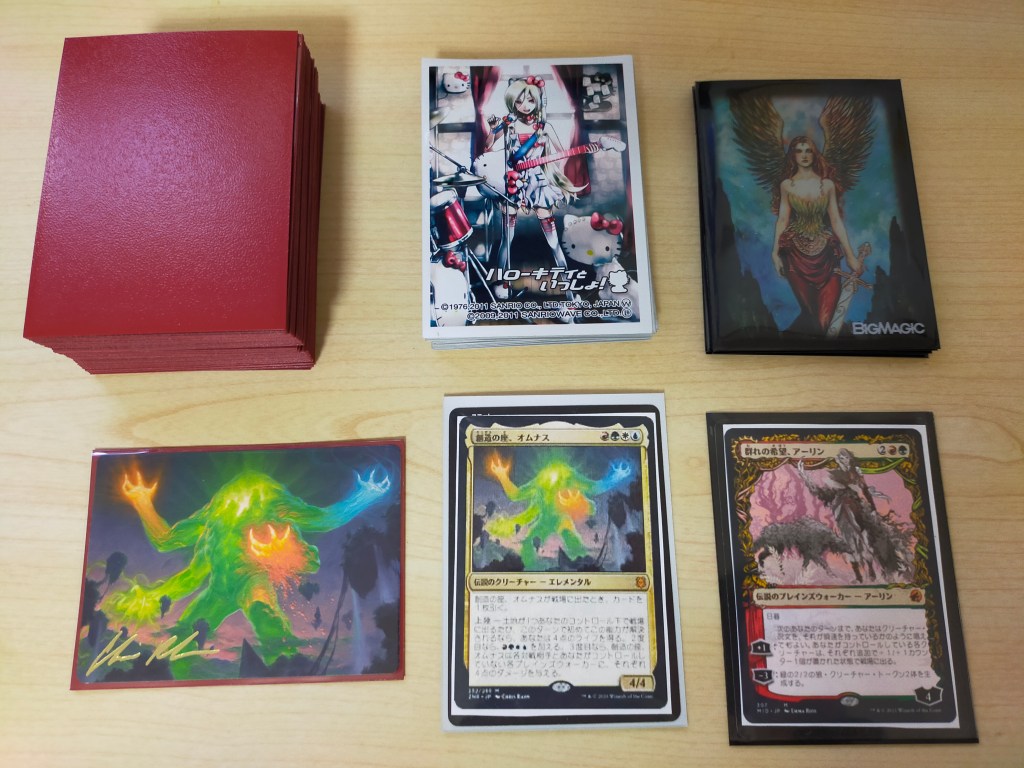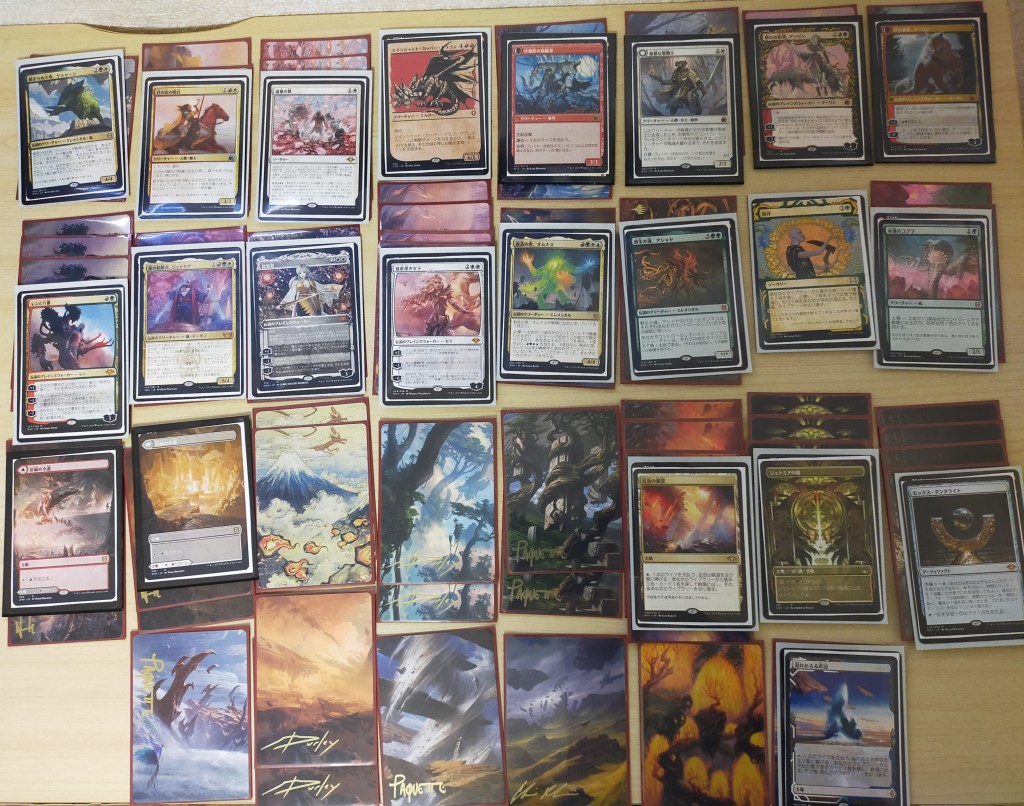 4色オムナスとアシャヤが2枚ずつサインとマーク入りだったことと、基本土地にもサイン入りが多かったため、デッキは4色オムナスに確定。