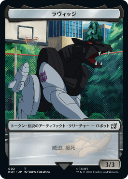 奇数の呪文を唱えると変身して、3/3威迫接死トークンを生成する。