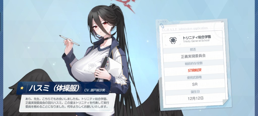 今回のイベントで星1ハスミ(体操服)が手に入った。
