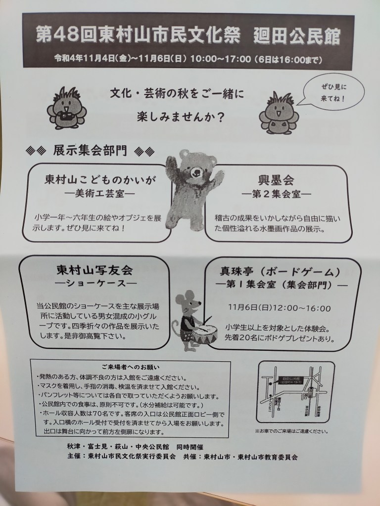 真珠亭例会の会場である廻田公民館で、東村山市民文化祭というものがある。
