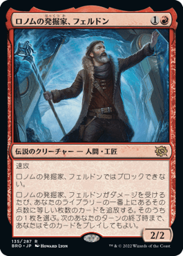 2マナ2/2速攻でブロックできないという前のめりでありながら、衝動的ドローはフェルドンがダメージを受けるたびに誘発する。
