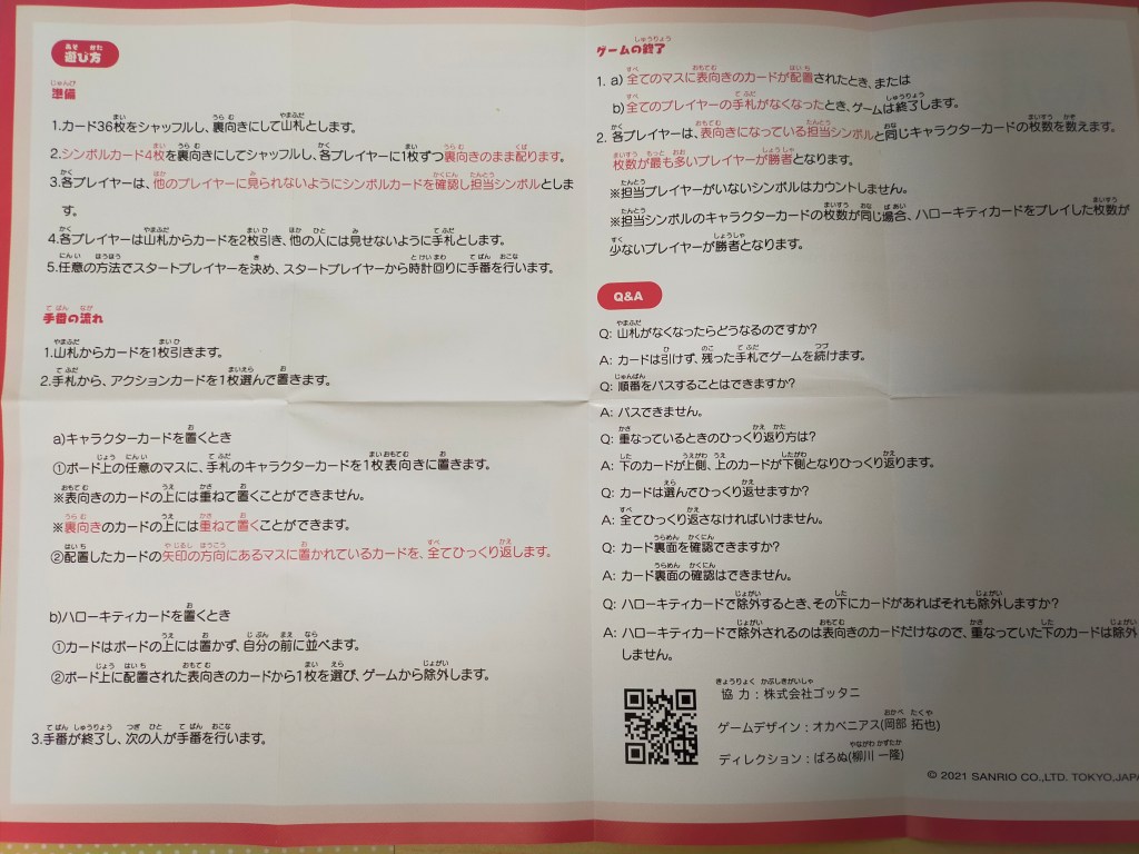 枚数が同じ場合、ハローキティカードを使った枚数が少ないプレイヤーの勝ち(それも同数なら多分引き分け)。