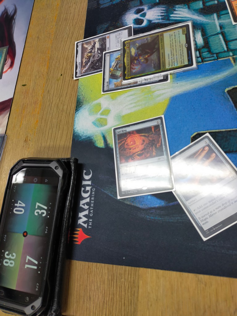 土地、太陽の指輪、秘儀の印鑑、巨像の槌(+10/+10ハンマー)を展開。