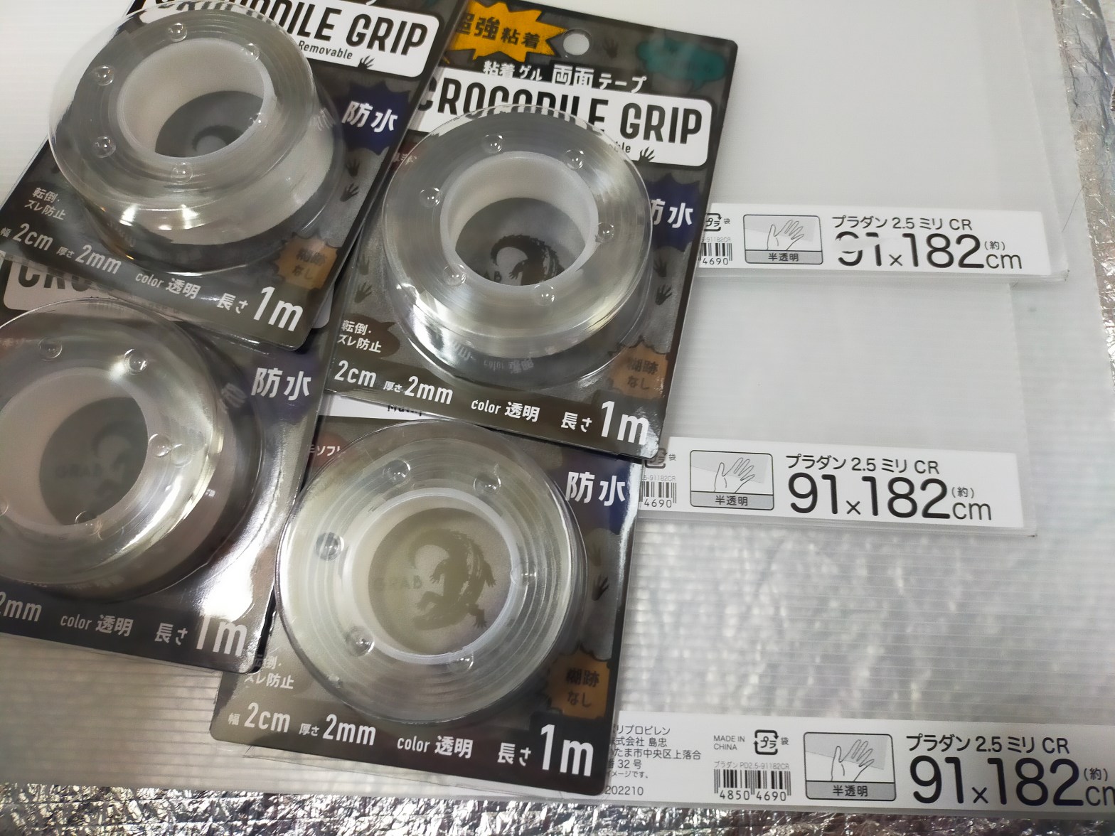 プラ段は3枚600円、ゲルテープは110円で4個購入。