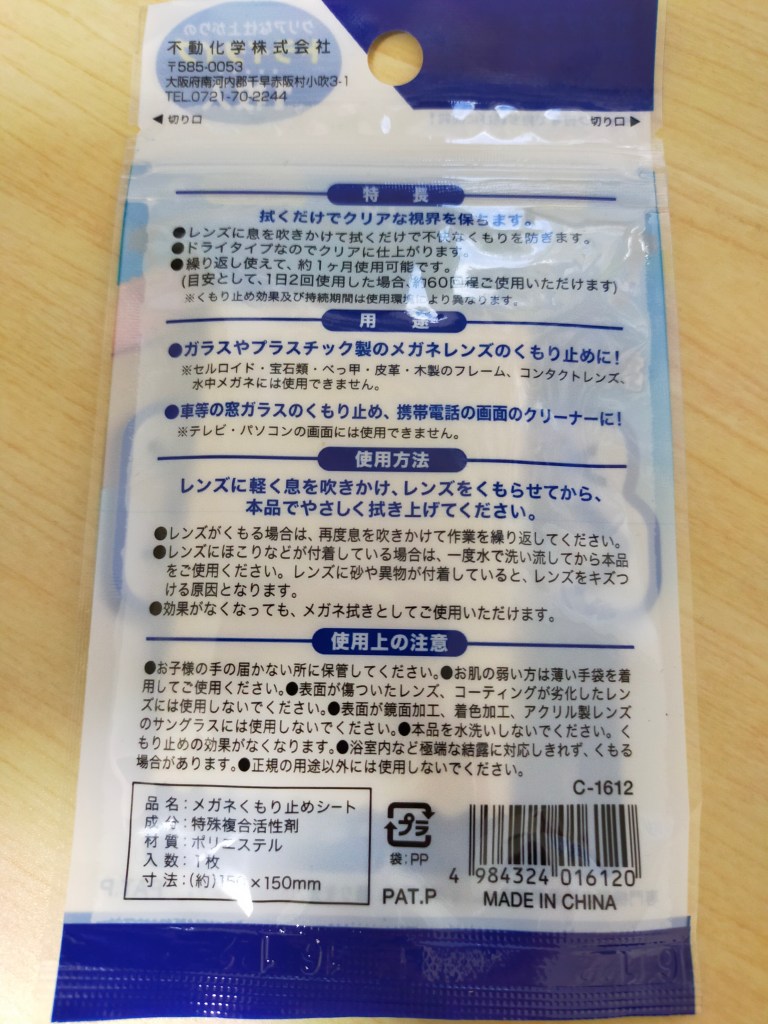 これはメガネ拭きというよりもクリーム付きの布という認識がいい。