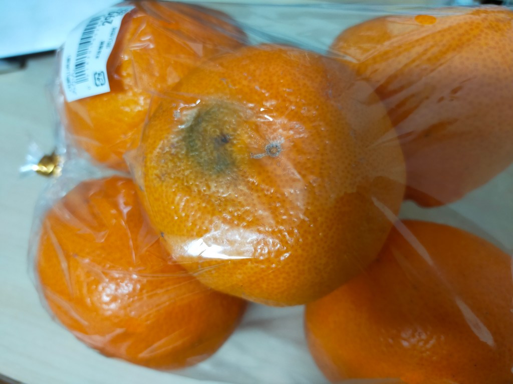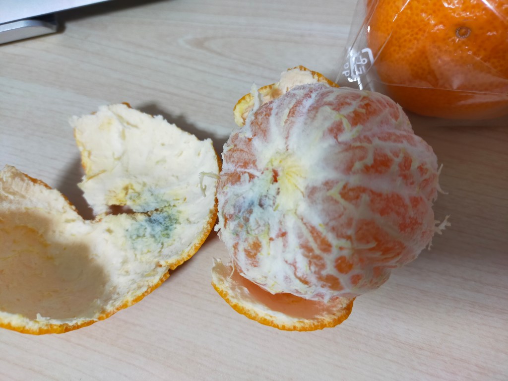 こちらのみかんは液漏れだけで、カビてはいない。