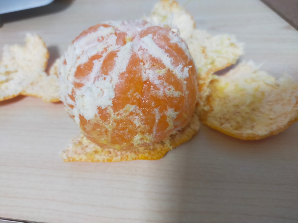 みかんは1日1個食べていたのだが、しばらく日をおいたためか、皮が柔らかいみかんができていた。