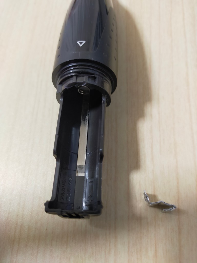 おおまかにL字型の金具が入っており、電池カバーを回転させると金属部分が触れて電気が流れるというシンプルな仕組みだった。