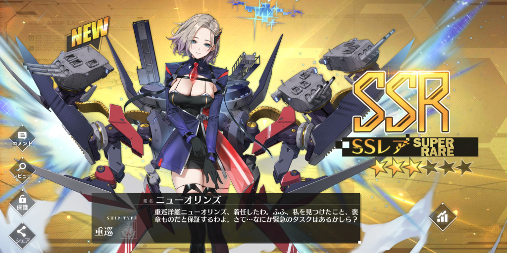 現状、通常海域の最終ステージである14-4を周回しまくって、ようやくニューオリンズに出会えた。