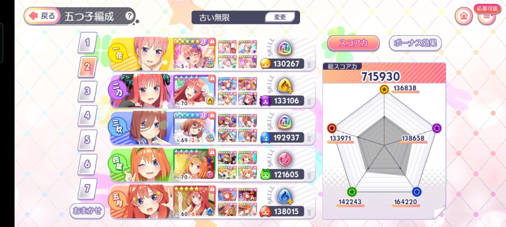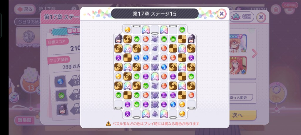 久しぶりに、ごとぱず(五等分の花嫁のパズルゲーム)を真面目に遊ぶ。