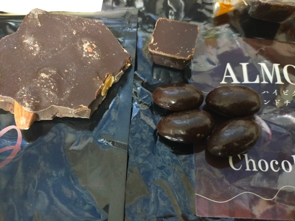 板チョコはカカオ86%だったが、アーモンドチョコレートの方は70%くらいだろうか。