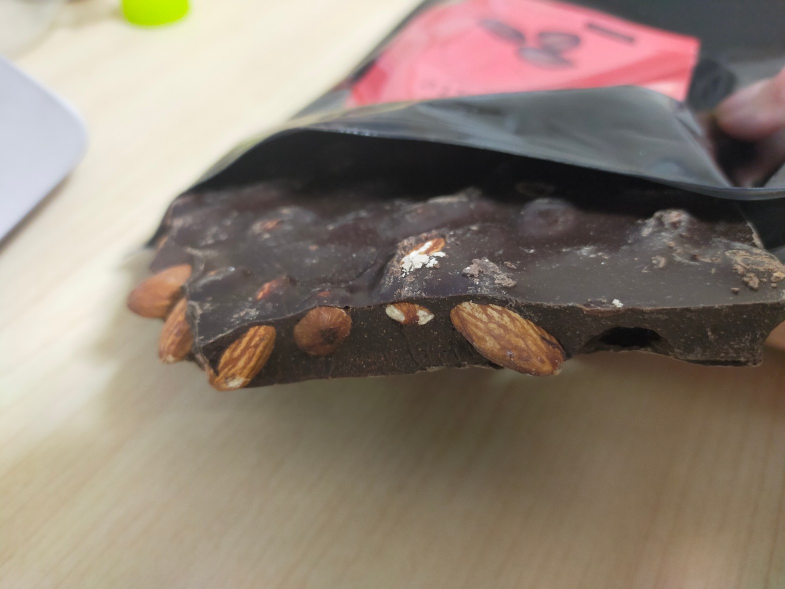 板チョコはカカオ86%だったが、アーモンドチョコレートの方は70%くらいだろうか。