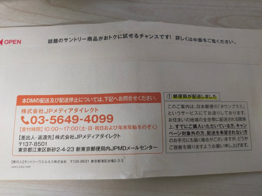 このサービスを利用したサントリーだけなく、原因を(サービスを)作った日本郵便も嫌いになってきた。