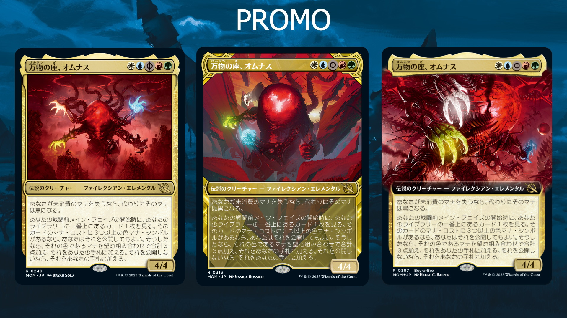 MTGの話。 公式が新弾「機械兵団の進軍」の情報を一部公開した。 色々あったが、まずは5色オムナスが出たことに驚いた。ボックス購入特典プロモ。 今までのオムナスは全て神話レアだが、コイツはレア。 ボックスプロモだから … 続きを読む 【MTG・機械兵団の進軍】ボックスプロモの5色オムナス「万物の座、オムナス」は毎ターン疑似ドローとマナ貯めができる(EDHではマナを貯めてX呪文を撃とう)