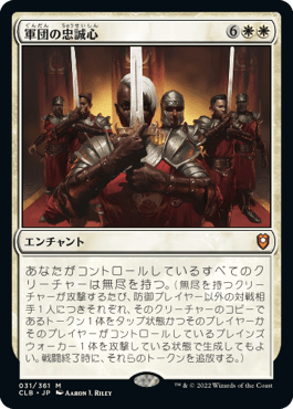 EDHダリアンに使っている「軍団の忠誠心」というエンチャントで、自軍のクリーチャーが無尽を持つ。