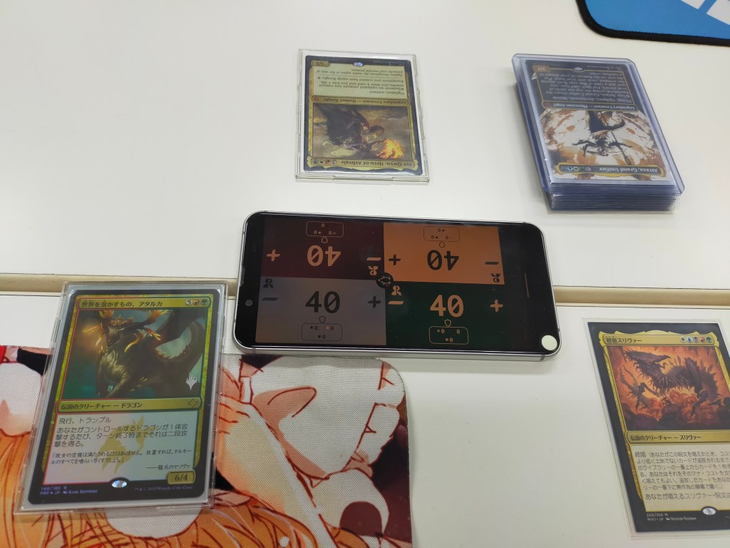アトラクサにオーラ除去をしたが、儚い存在で剥がされ、手札を増やされ、サイクロンの裂け目を超過で撃たれてアトラクサの勝ち。