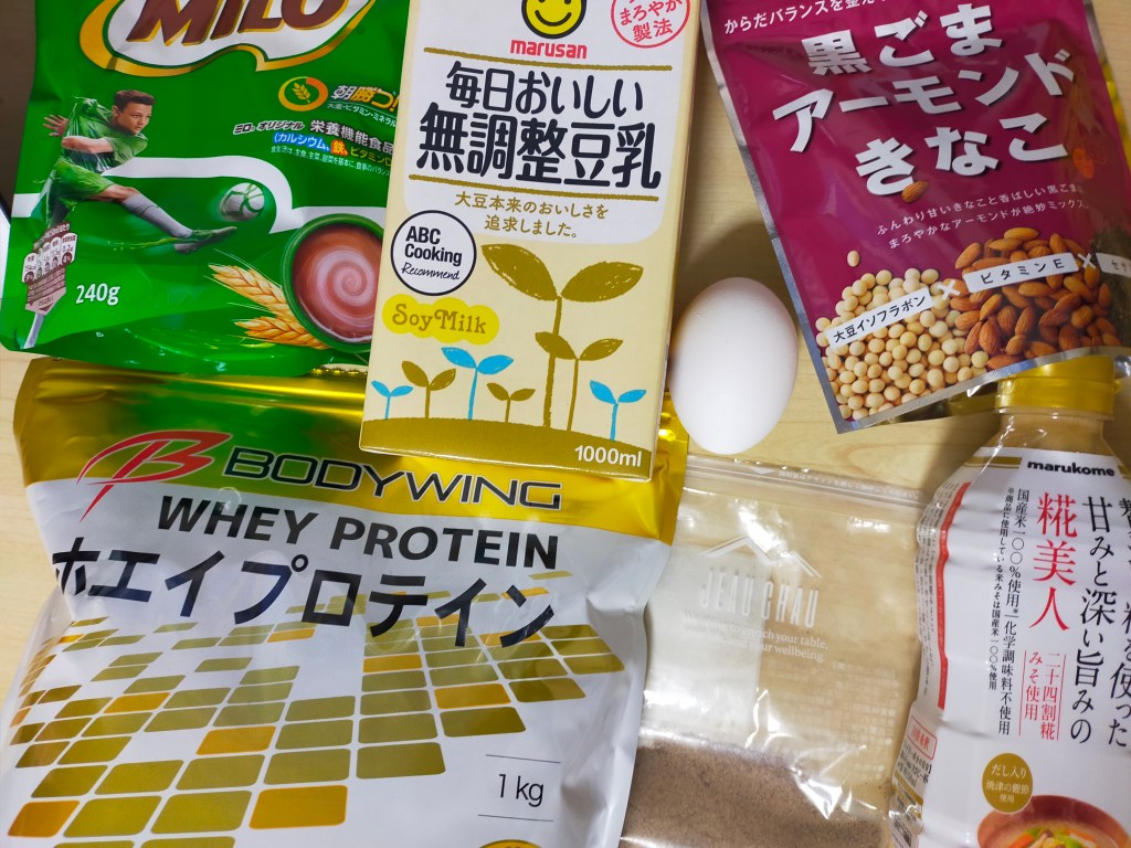 プロテインは、摂取できるタンパク質が多く(しっかり吸収されるかは置いておくとして)、色々と追加して栄養価の高いものにできる。