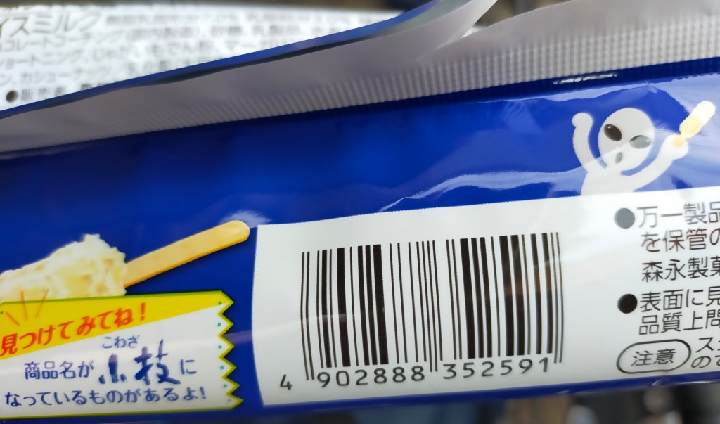 裏を見ると「森永アイス ホワイト小枝アイスバー」とある。