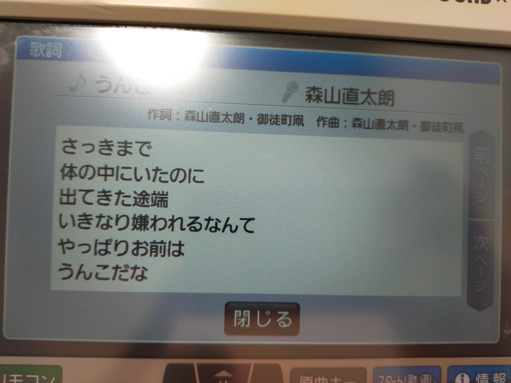 今回の「うんこ」の歌詞について、哲学的なことを考えたくなったが止めておこう。