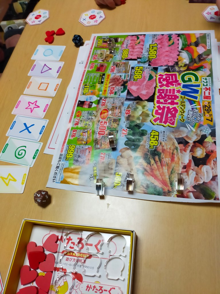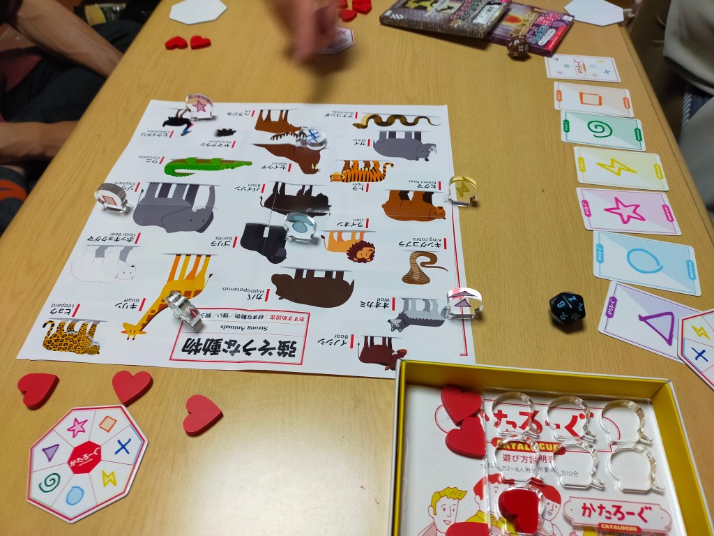 ボードゲームに慣れていない人もいるだろうということで、まずはコミュニケーションゲームである「かたろーぐ」。