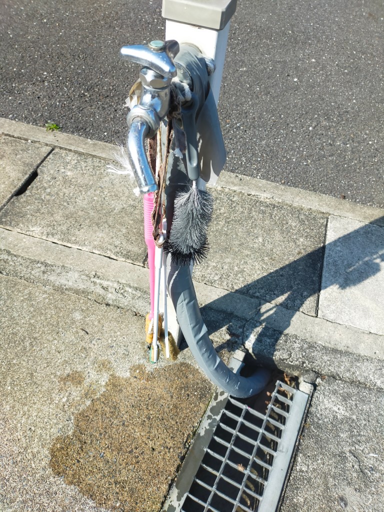 水と桶と柄杓だけでなく、ブラシとスポンジまで使えるらしい。