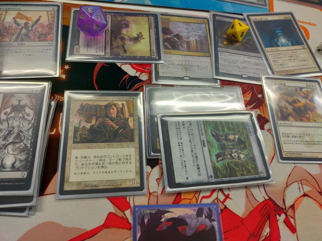 アップキープに20面ダイスを振ったり、ダイスの出目を増やしたり、毎ターンダイスを6面ダイス5個を振り直せたり、ダイス関連のカードは結構あるんだなあ。