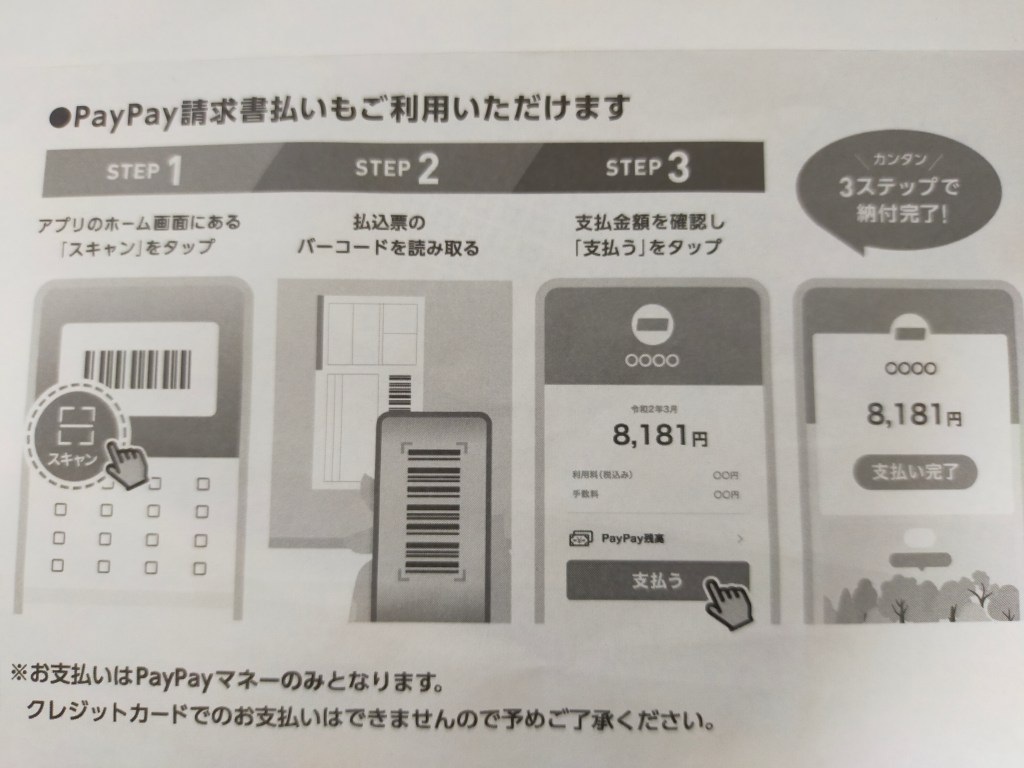 その際、PayPay請求書払いが出来るというのでやってみる。