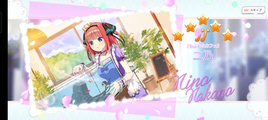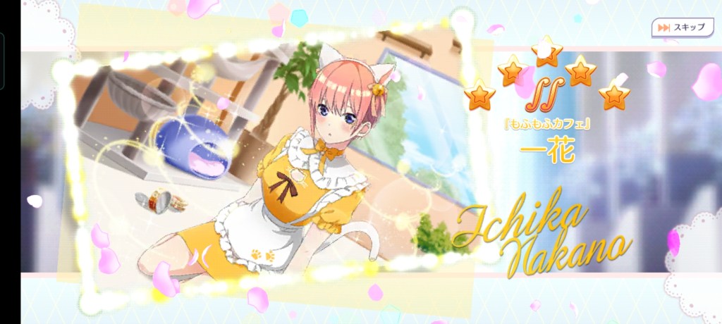 今回は、もふもふカフェ二乃しか手に入らなかった。しかも3枚。