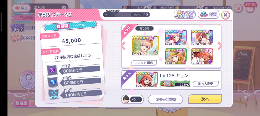サブメンバーに手数アップを入れて、ステージの手数アップ玉を破壊しておけばゴリ押しで行ける。