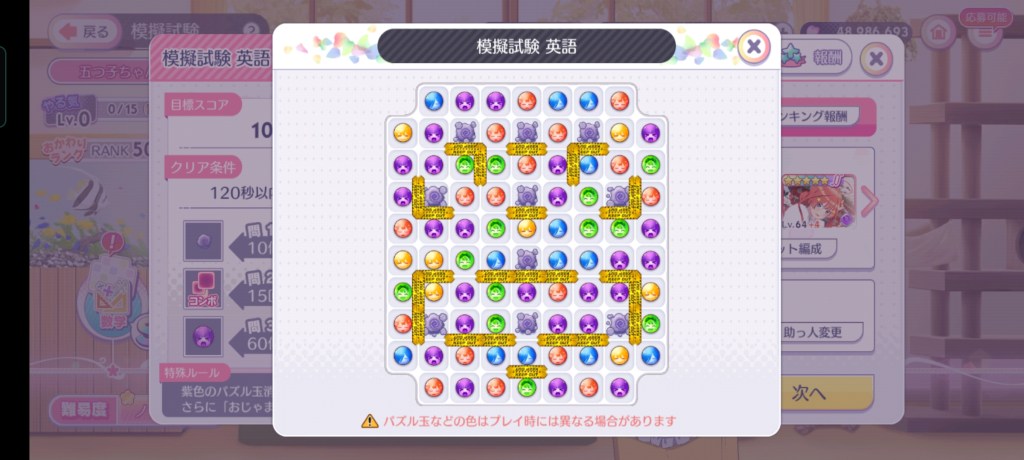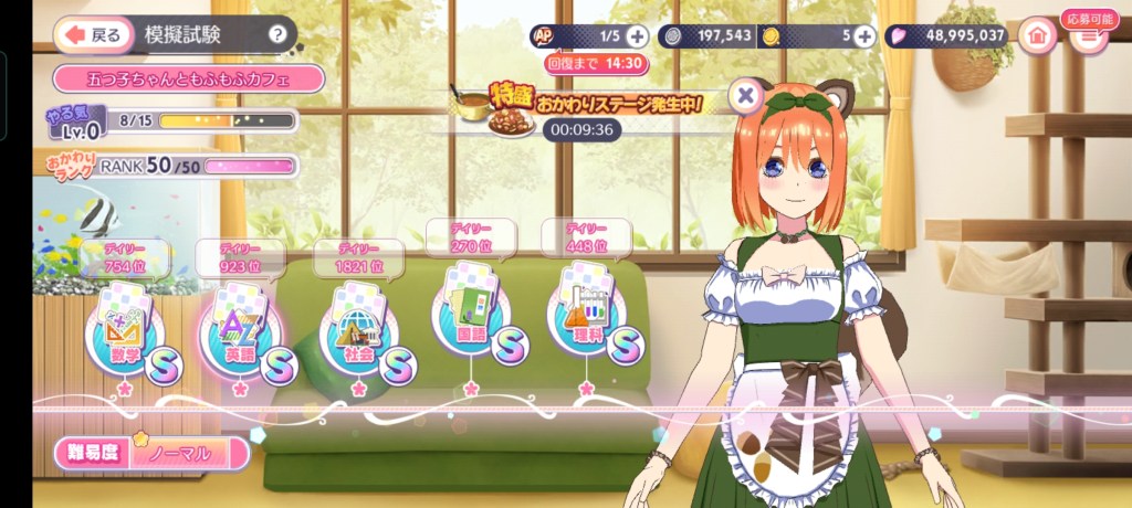 イベントステージ以外にも、模擬試験のステージが5つも開放されていて面倒くさかったな。